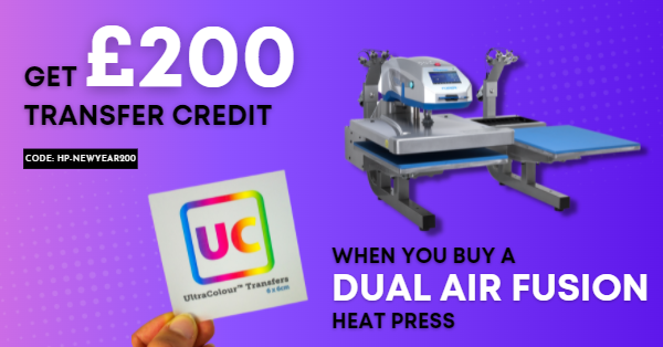 Don't forget to use CODE: HP-NEWYEAR200 to get £200 Custom Heat Transfer Credit when you purchase any Auto Open Heat Press. Offer valid until February 14th.