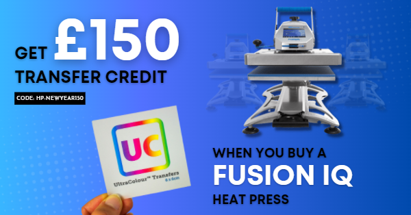 Don't forget to use CODE: HP-NEWYEAR150 to get £150 Custom Heat Transfer Credit when you purchase any Auto Open Heat Press. Offer valid until February 14th.