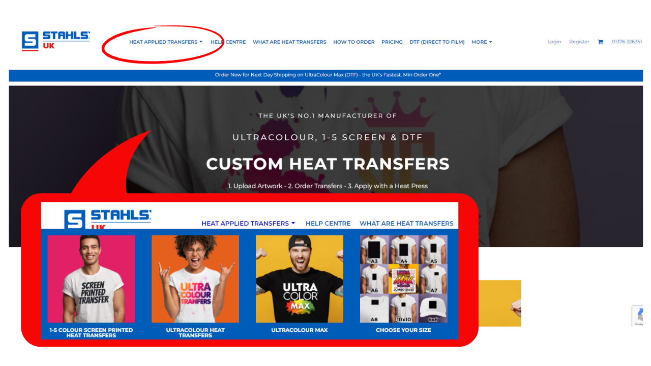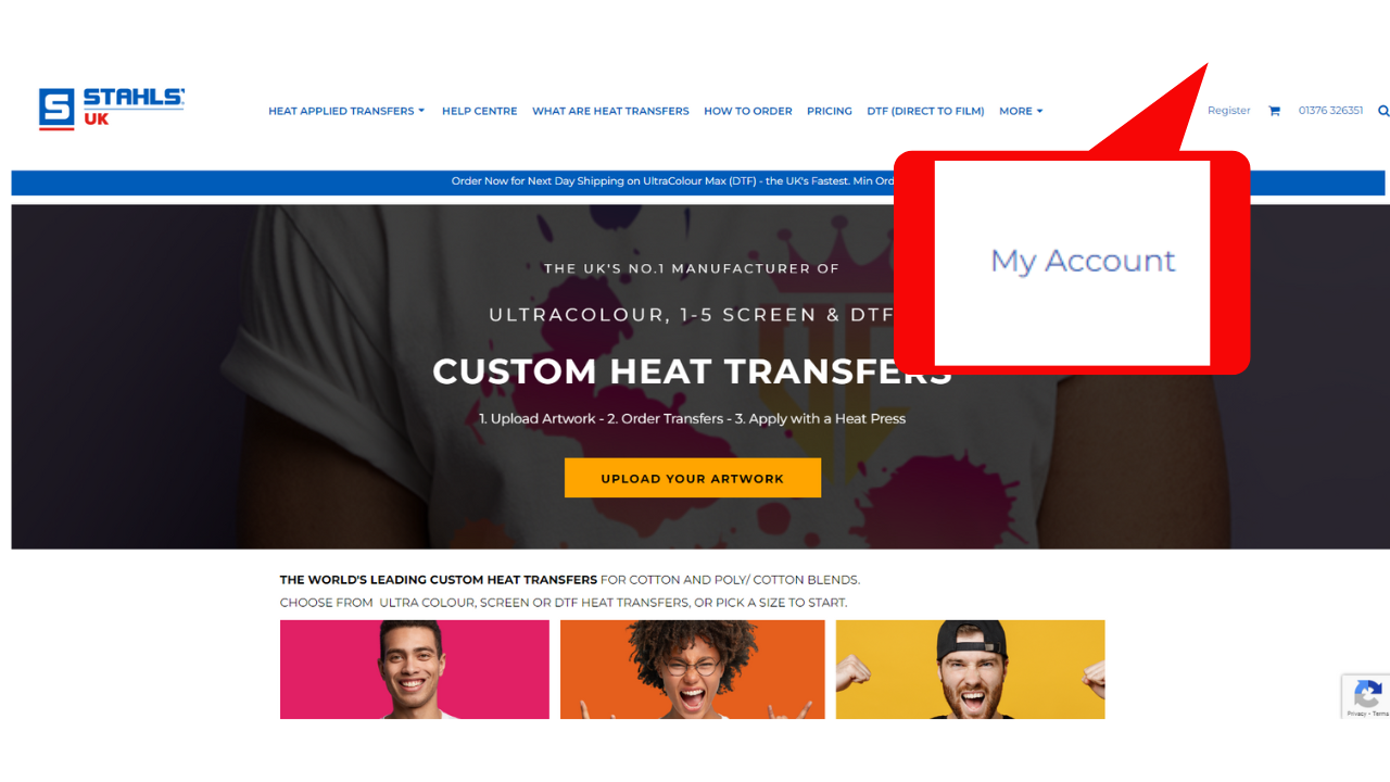 To place your first order, click here and create your Stahls' UK Custom Heat Transfer account
