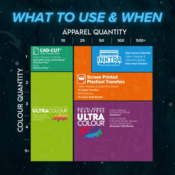 Not sure which heat printable material to use? Check out our handy guide below: