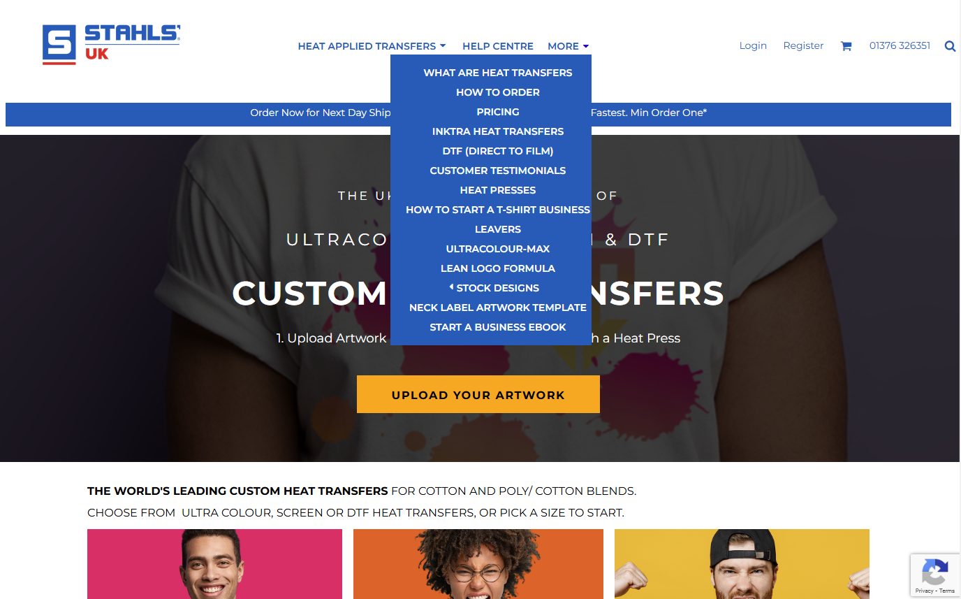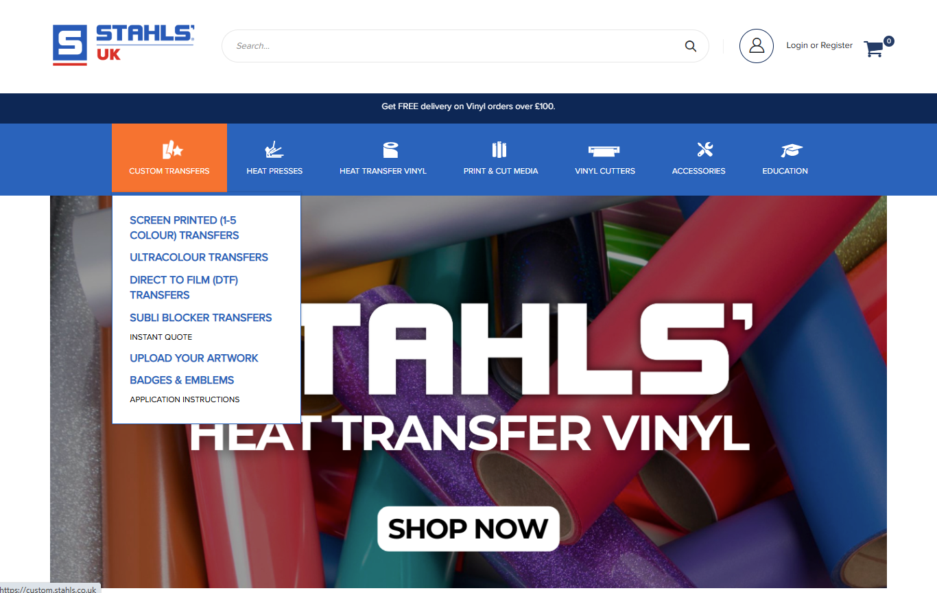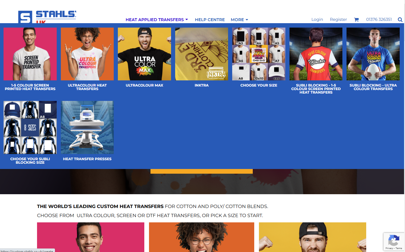 If you access it through Stahls.co.uk, you will need to use the first drop-down on the navigation menu which will take you to the Stahls' UK Heat Transfer website.