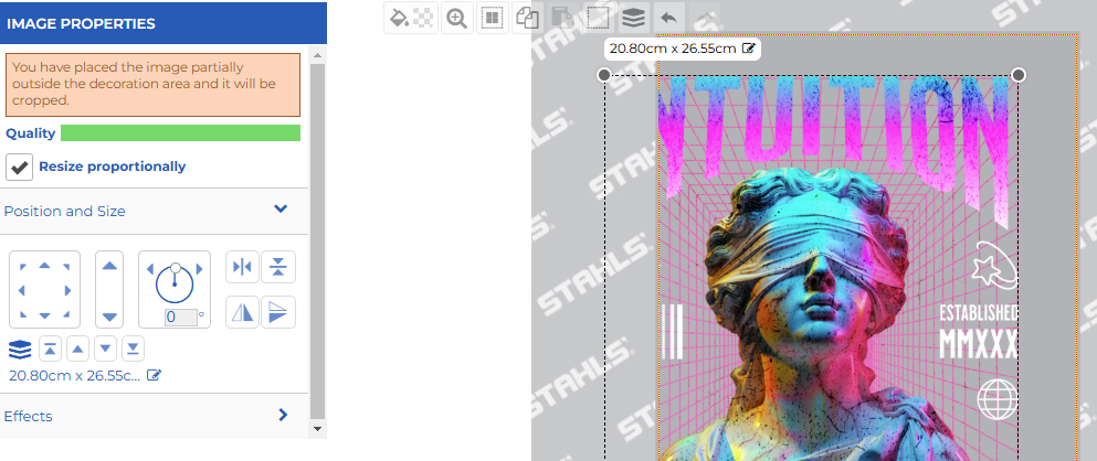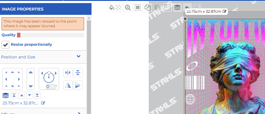 Once uploaded, you can resize/alter your design, change your sheet layout and much more which will will explore below.