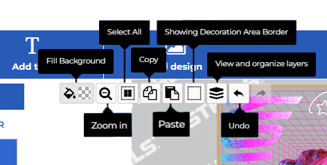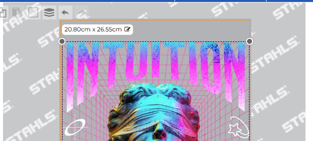 Hovering over your heat transfer sheet, you will find a greyed-out toolbar consisting of 7 different tools. When you hover over each tool, it will become clearer to see.