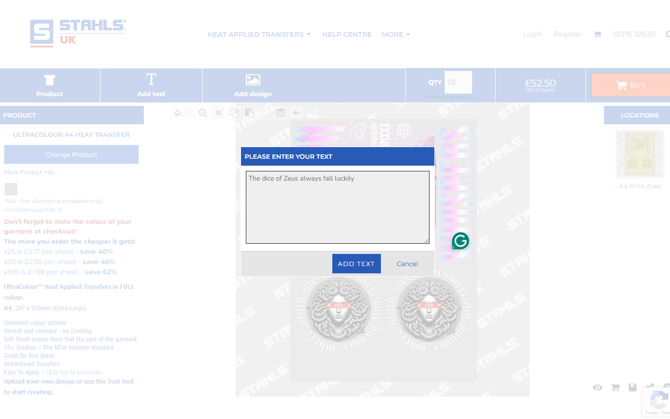 Below are a couple of features you can use to customise your heat transfer sheet:
