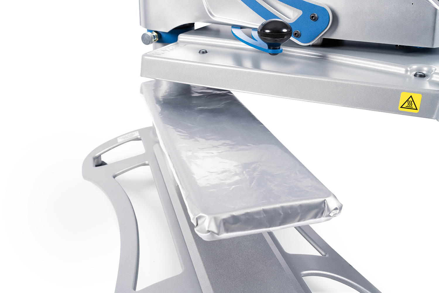 Similarly to the single leg platen, it helps ensure even pressure and precise placement, reducing the risk of misalignment or inconsistent prints.