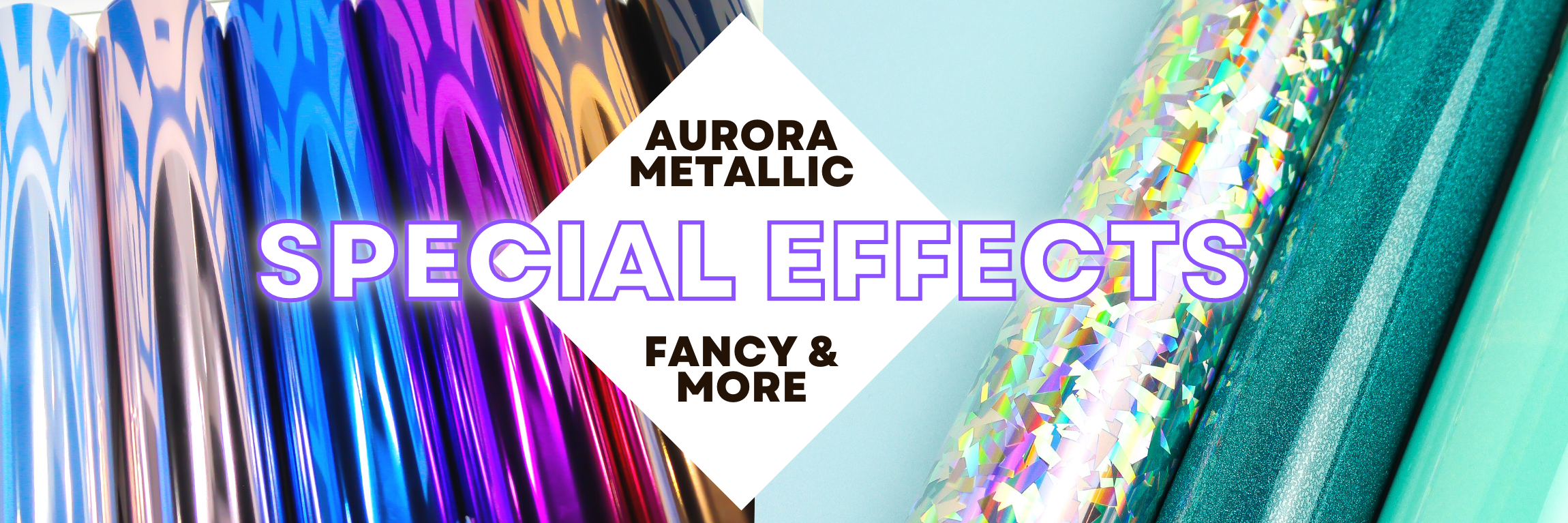 Choose from the iridescent finish of Aurora Chroma Twill, the soft shimmer of Soft Metallic, the perfect combination of flex and glitter in Fancy HTV and an array of holographic and sparkle finishes in Effect HTV. There is something for every business.