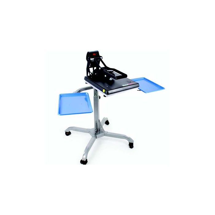 Blank garments, transfers, and accessories are always within reach with these strong, durable shelves. Heat press and caddie sold separately.